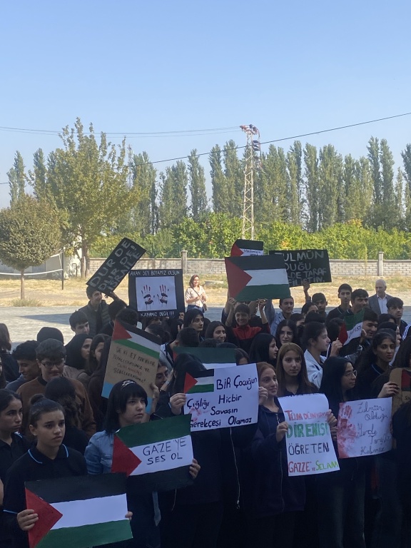 Iğdır Güzel Sanatlar Lisesi öğrencileri, Filistin’de yaşanan insanlık dramına dikkat çekmek ve barışa olan inançlarını dile getirmek amacıyla anlamlı bir etkinlik gerçekleştirdi.